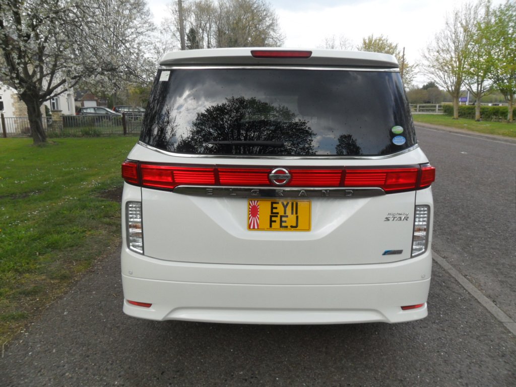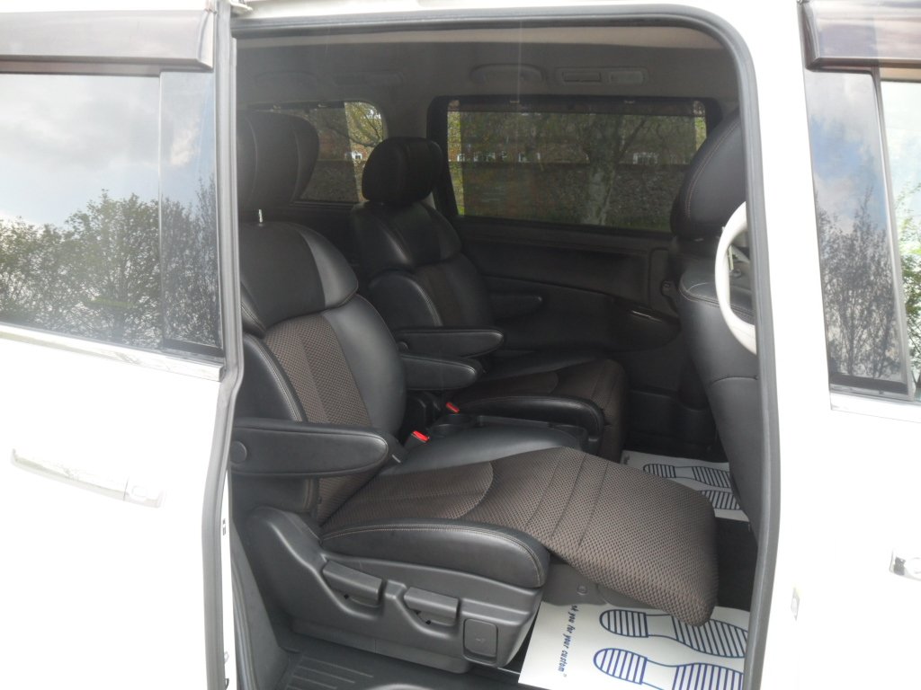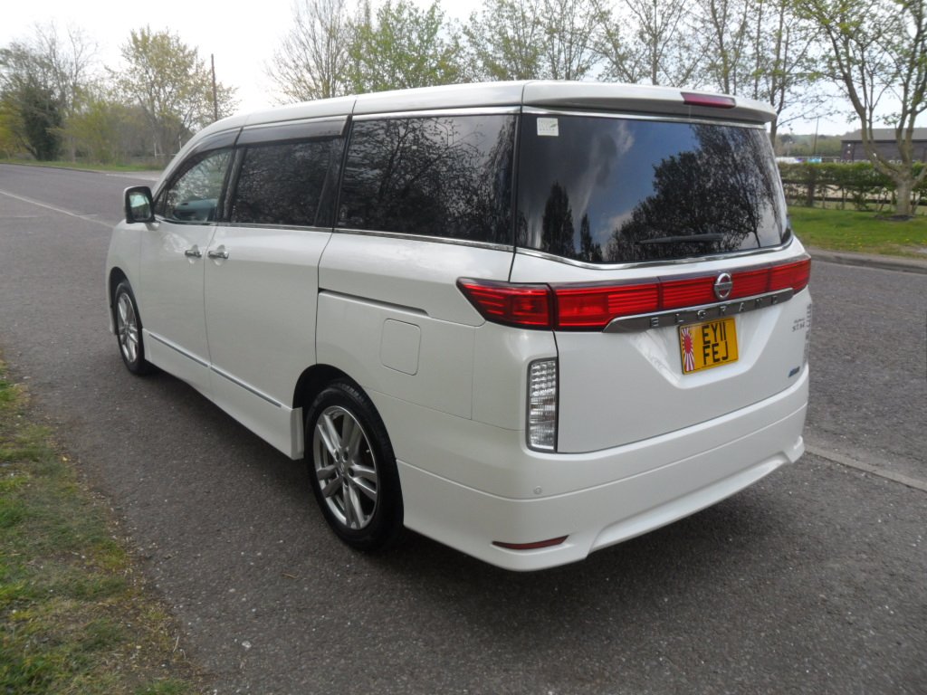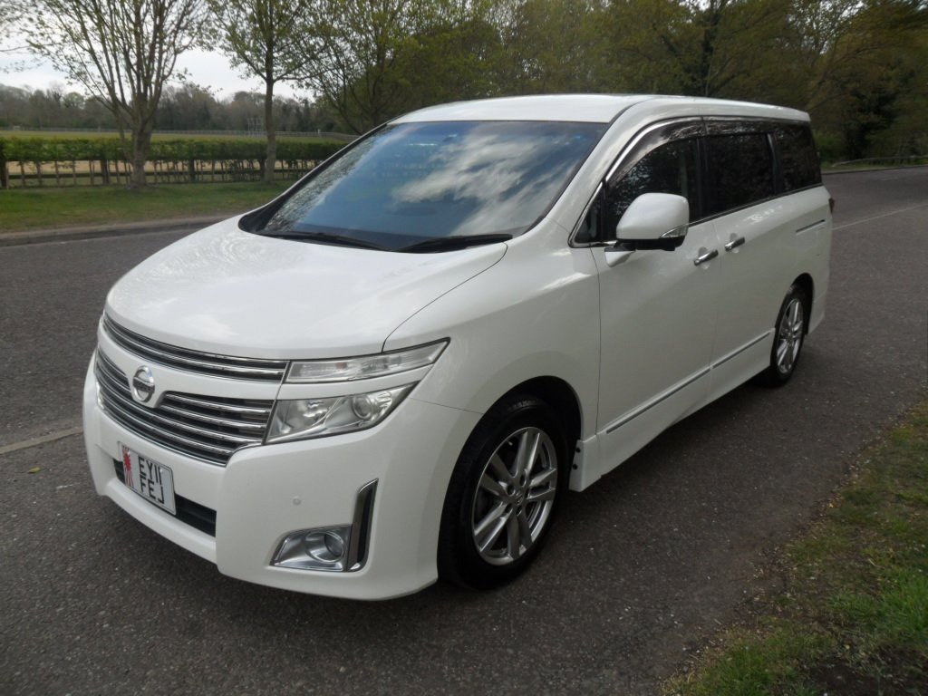 just registered and ready for its new owner this stunning nissan elgrand e52 highway star, remote central locking with keyless entry and start, twin electric sliding doors, duel climate control, alloy wheels, rear parking camera, twin side cameras, half leather interior with reclining seats, power steering, abs, cdradio with bluetooth and phone sync, full japanese service history, eco mode, auto gearbox, cupholders galore, usb connection, alarm/immobiliser, absolutely stunning pearlescent white paintwork.